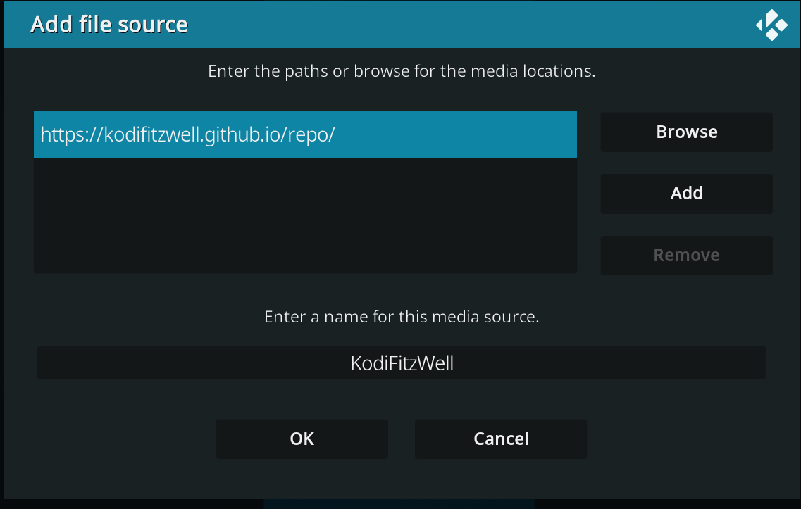 Create a recognizable name for the package repo. If you mess anything up and Kodi takes you back to the File Manager, long press on the source and you can edit it.
